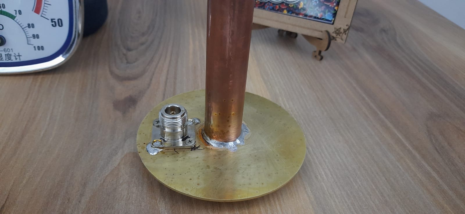 Ardından N konnektörü reflektör plakası üzerine nasıl takabileceğimizi planladık. Zira konnektörün lehim yapılacak kısmında konik bir yapı vardı. Plakada büyük bir delik açmamak için ondan kurtulmaya karar verdik.