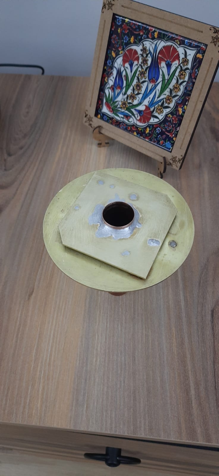 Öncelikle bakır boruyu zımparalayarak işe başladık. Çünkü çapı biraz büyük olduğundan plakaları üzerine takamamıştık.