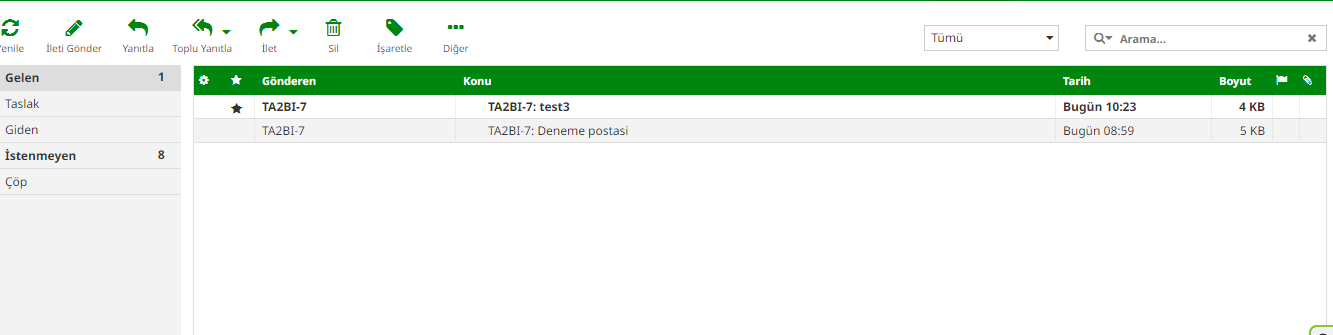 Resimde göründüğü gibi mailimiz ulaşmış. Gönderi kısmında sizin çağrı işaretiniz çıkmaktadır.